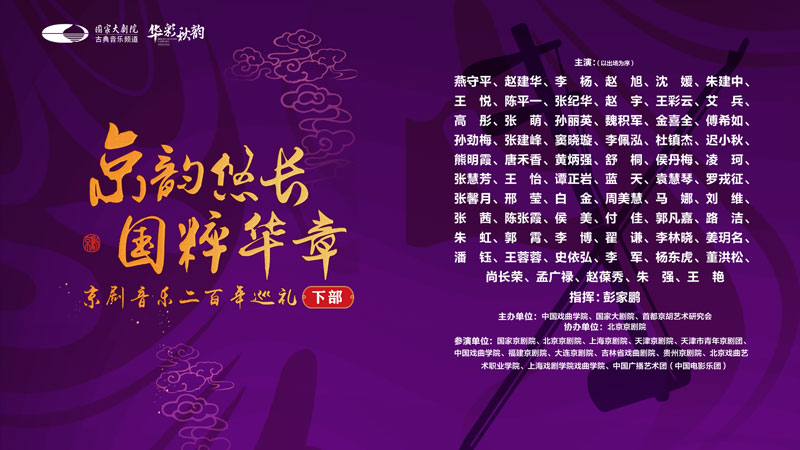 ??“戏曲是中华文明的瑰宝”。在举国欢庆中华人民共和国成立75周年之际,今晚19:30,京韵悠长·国粹华章——京剧音乐二百年巡礼(上部)将在js1996官网登录“华彩秋韵”系列线上演出与广大网友见面。以一幅京剧音乐js1996官网登录的壮阔画卷,传承、传播与弘扬中华优秀传统文明。